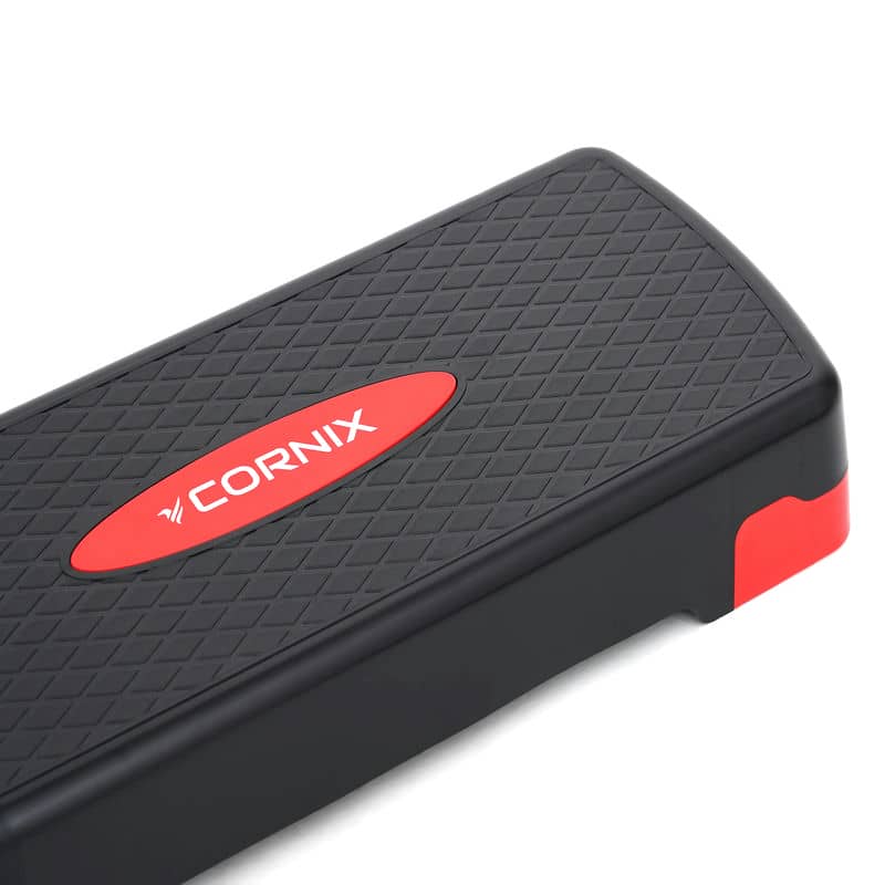 Платформа для аеробіки від Cornix регулюється по висоті - ступені можна виставити на 10 або 15 см. Матеріал виробу - високоякісний пластик, має безліч переваг, він легкий, міцний та довговічний. Поверхня степу з нековзким візерунком, що робить її безпечною незалежно від темпу та інтенсивності тренування. Кожна ступінь обладнана гумовими ніжками, які виконують декілька функцій: приглушують звуки динамічних вправ, захищають підлогове покриття від пошкоджень та головне - дозволяють платформі залишатись стабільною.