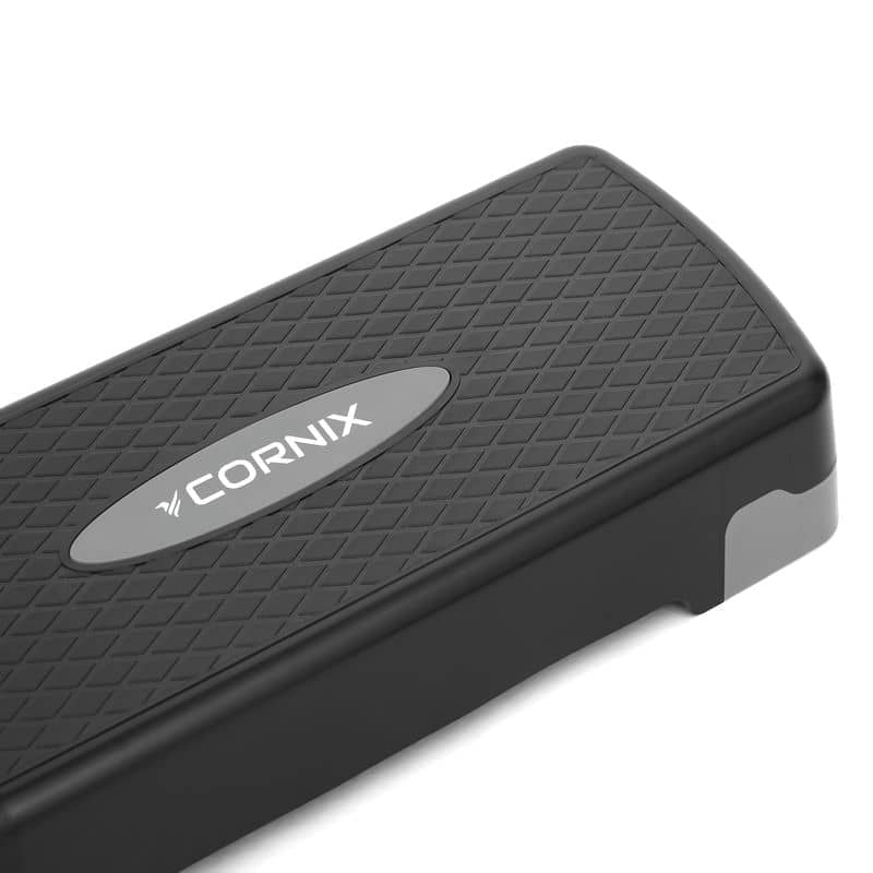 Платформа для аеробіки від Cornix регулюється по висоті - ступені можна виставити на 10 або 15 см. Матеріал виробу - високоякісний пластик, має безліч переваг, він легкий, міцний та довговічний. Поверхня степу з нековзким візерунком, що робить її безпечною незалежно від темпу та інтенсивності тренування. Кожна ступінь обладнана гумовими ніжками, які виконують декілька функцій: приглушують звуки динамічних вправ, захищають підлогове покриття від пошкоджень та головне - дозволяють платформі залишатись стабільною.