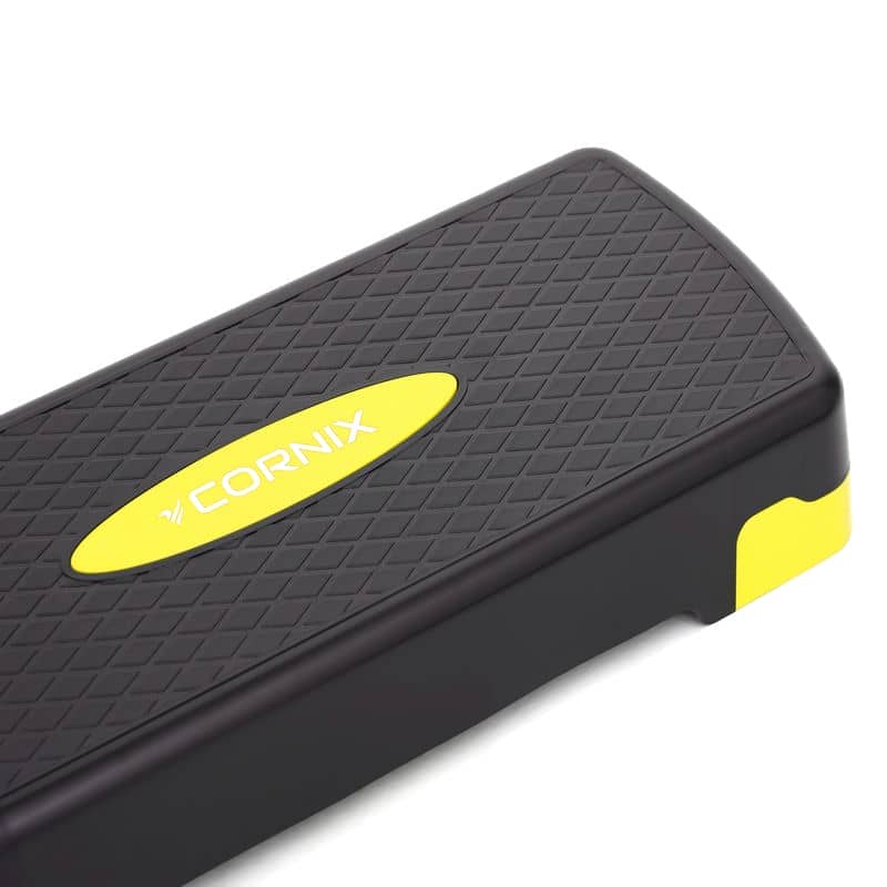 Платформа для аеробіки від Cornix регулюється по висоті - ступені можна виставити на 10 або 15 см. Матеріал виробу - високоякісний пластик, має безліч переваг, він легкий, міцний та довговічний.  Поверхня степу з нековзким візерунком, що робить її безпечною незалежно від темпу та інтенсивності тренування. Кожна ступінь обладнана гумовими ніжками, які виконують декілька функцій: приглушують звуки динамічних вправ, захищають підлогове покриття від пошкоджень та головне - дозволяють платформі залишатись стабільною.