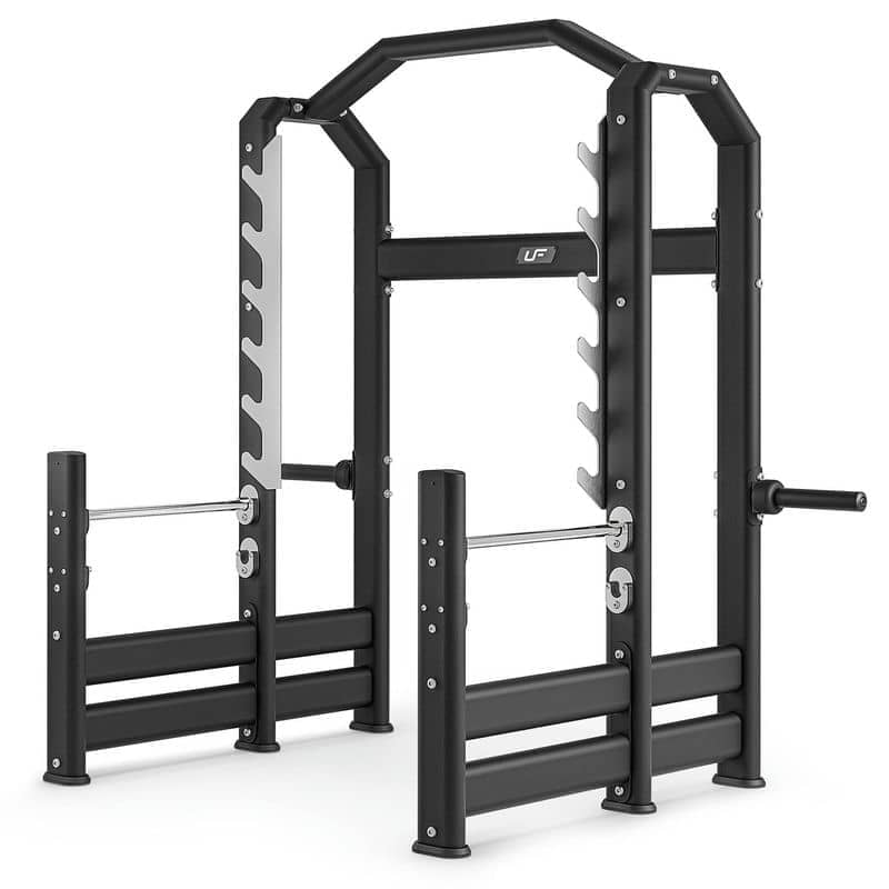 Ця модель була оснащена шістьма парами ручок для постановки штанги і додатковим регульованим стрижнем безпеки, розміщеним в передній частині стійок. Це дозволяє виконувати як присідання зі штангою, так і підйоми на носки стоячи, і станову тягу.