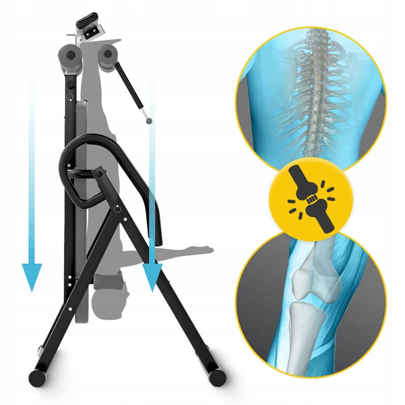 Інверсійний стіл від польського бренду 4Fizjo - це обладнання, що дозволяє виконувати вправи у вертикальному положенні, тобто з опущеною головою до низу. У такому стані міжхребцеві диски повертаються на місце, а хребет розтягується. Уявіть, як після тривалого стояння, сидіння за столом чи за кермом автомобіля, ви нарешті можете розслабити напружену спину. Отже, гравітаційна лава стане у нагоді, якщо ви: дбаєте про правильну поставу тіла; хочете зменшити набряки та стимулювати крово- та лімфообіг; хочете зробити тіло більш гнучким та збільшити діапазон рухів; бажаєте зменшити біль у хребті, поперековому відділі чи тазостегнових суглобах; боретеся з м’язовими спазмами та напругою.