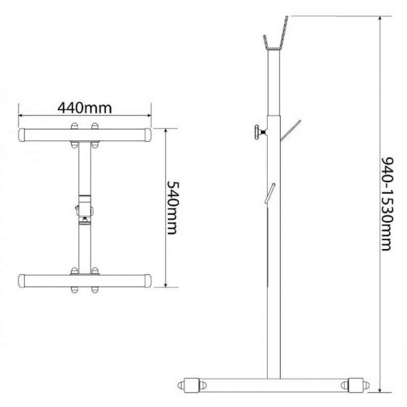 - Габарити в робочому стані (ДхШхВ): 940-1530x510x440 мм (2 стійки)