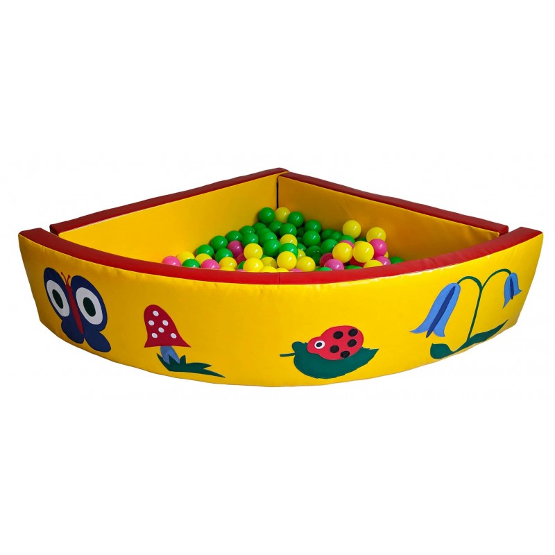 Опис: сухий басейн для дитячих рухливих ігор. У нього можна насипати пластикові кульки різного діаметру, м'які іграшки, солодощі тощо. Їх сприятливий сенсорне вплив на психологічне, емоційне і фізичний розвиток дітей доведено не одним поколінням педіатрів і невропатологів. Наповнювач сухого басейну надає масажне дію, яскраві деталі сприяють вивченню кольорів і форм. Часто використовується в реабілітаційній роботі дітей з відставанням у розвитку або неврологічними патологіями.