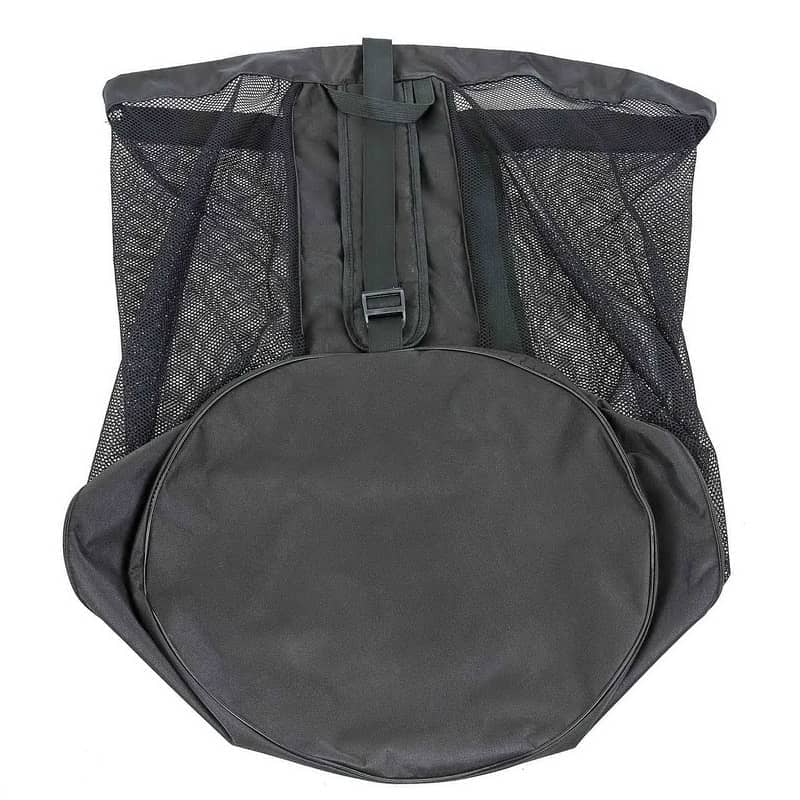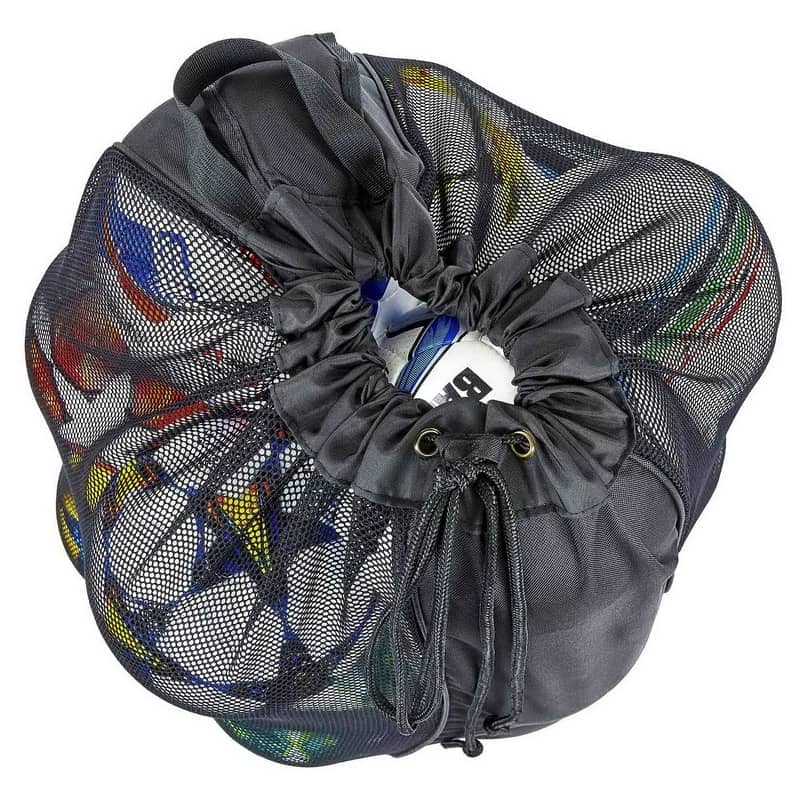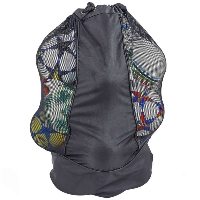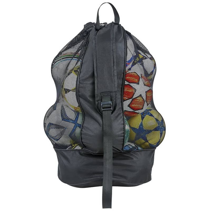 Сумка-рюкзак для м'ячів має зручну та продуману конструкцію, яка дає змогу їй вміщати 20 спортивних снарядів. М'яка спинка забезпечує комфортний розподіл навантаження. Дві лямки регулюються за довжиною і також виконані з м'якого матеріалу. Вони досить широкі і не натискають на плечі. Дно виконано з міцного і щільного поліестеру для захисту від передчасного зносу. Бічні стінки, навпаки, виконані з сітки, що дає змогу м'ячам висихати після використання, навіть якщо вони були поміщені в сумку ще вологими. На лицьовій стороні сумки є кишеня на блискавці та карабін. Сумка закривається за допомогою стяжки.