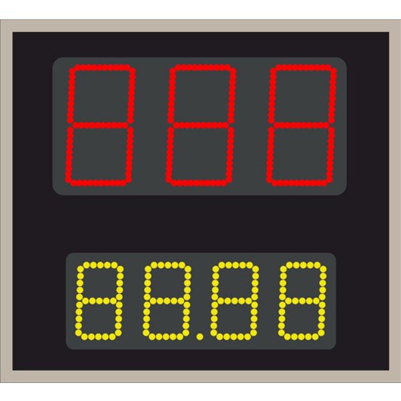 Пріоритет в сприйнятті інформації про результати спортсмена зроблений на кількість зафіксованих підняттів. За дизайном, це табло виграє, зберігаючи всі переваги цієї лінійки табло для гирьового спорту: можливість одно- і дво- стороннього виконання, управління від провідних чи бездротових пультів, можливість підключення групового табло результатів, ведення протоколів в автоматичному режимі, з можливістю введення списків учасників з популярних табличних форматів. Є можливість експорту і друку результатів змагань (доступно для варіантів комплектації з комп'ютером). Комплект бездротових односторонніх електронних табло для проведення змагань з гирьового спорту: табло для гирьового спорту 6 шт.; звуковий сигнал; стаціонарна підставка 6 шт.; програмне забезпечення на носії; паспорт та інструкція з експлуатації; захисна упаковка. Висота цифр в поле ЧАС: 100 мм, дальність видимості до 40 метрів. Висота цифр піднято: 150 мм, дальність видимості до 60 метрів. Елемент індикації: світлодіод 5 мм. Яскравість світіння світлодіодів (залежить від кольору): 0,8-3,5 Кд. Значення поля РЕЗУЛЬТАТ: 0-999. Максимальна тривалість змагання: 59 хвилин 59 секунд. Збереження налаштувань: необмежено. Матеріал рами: алюміній. Матеріал корпусу: анодований алюміній. Лицьова панель: оргскло із захисною плівкою. Температура експлуатації: від 0 до +60°С. Напруга живлення: 220 В. Потужність середня: до 50 Вт. Тип кріплення табло: на підставку. Вага одного табло в упаковці: 6 кг. Габарити табло в упаковці: 620х490х75 мм.