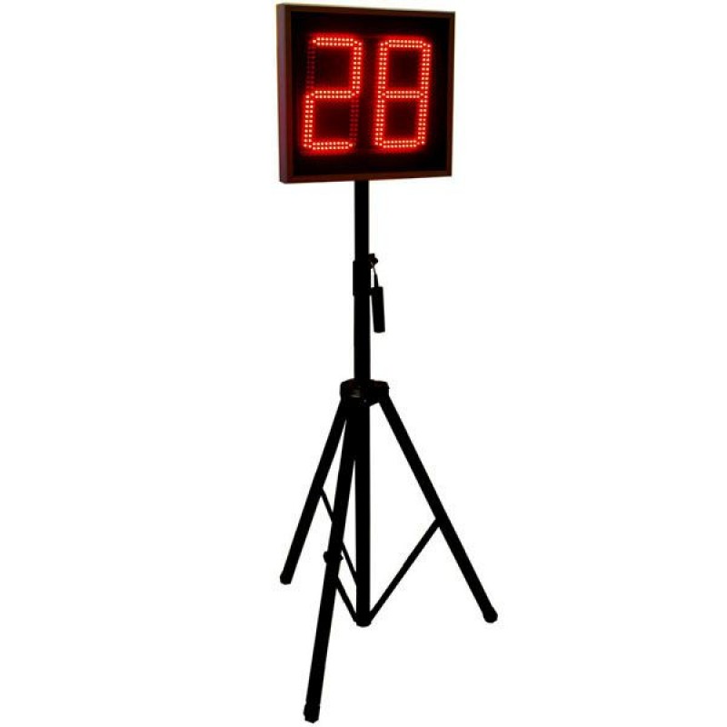 На вимогу можливе виконання в двох-і трьох сторонньому варіанті. Кнопка судді відлічує кола, при натисканні додає одиницю до числа кіл, а при утриманні скидає значення на нуль. Дана модифікація отримує живлення від акумулятора або від зовнішнього джерела живлення 12 вольт. Суперяскравi світлодіоди видно при яскравому сонячному світлі. На вимогу, в комплект поставки включається протисонячний козирок. Передбачено захист від неправильного включення полярності живлення лічильника кіл. Комплект поставки: лічильник кіл електронний спортивний; кнопка судді з проводом 10 метрів; джерело живлення спортивного табло; картонна і поліетиленова упаковка. Висота всіх цифр: 250 мм, дальність видимості до 100 метрів. Елемент індикації: світлодіод 5 мм. Яскравість світлодіодів: 3,5 Кд. Значення на лічильнику: 0-99. Матеріал рами: алюміній. Матеріал корпусу: анодований алюміній. Лицьова панель: оргскло із захисною плівкою. Температура експлуатації: від -40 до +60°С. Напруга живлення: 12 В. Потужність: до 15 Вт. Тип кріплення табло: настінн на стійку. Дальність роботи від табло: до 10 метрів. Габарити табло в упаковці: 520х420х75 мм.