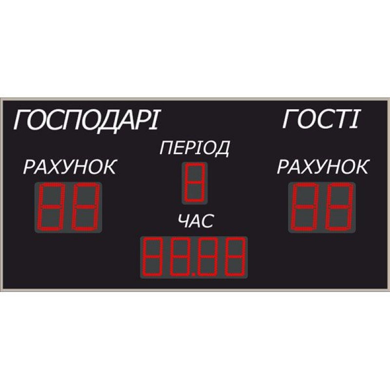 Корпус – композит, колір корпусу – чорний; Пиловологозахищение виконання Живлення – 220В, 50 Гц 1,5м; до 200Вт Вбудована сирена Керування: -  ІЧ пульт - проводовий пульт Комплект поставки:  табло світлодіодне – 1 шт;   ІЧ пульт АА59-00332А   - 1шт; проводовий пульт арт.07724; кабель для проводового пульту – 20м; інструкція; картонна  упаковка  Характеристики:  Размір корпусу 2020х1020х50 мм;  Колір свічення світлодіодів – червоний(або інший уточнюйте);  Корпус – композит, колір корпусу – чорний;  Пиловологозахищение виконання Живлення – 220В, 50 Гц 1,5м; до 200Вт Вбудована сирена Керування: -  ІЧ пульт - проводовий пульт Комплект поставки:  табло світлодіодне – 1 шт;  ІЧ пульт АА59-00332А   - 1шт; проводовий пульт арт.07724; кабель для проводового пульту – 20м; інструкція; картонна  упаковка Табло світлодіодне відображає: Можливості виведення інформації на спортивному табло: час гри – таймер ММ:СС або секундомір ММ:СС; партія, тайм або чверть; рахунок в грі (0-99) для кожної команди; Висота цифрових символів РАХУНОК: 250 мм, ЧАС: 200 мм, Період: 200 мм; Гарантія від виробника 24 місяці