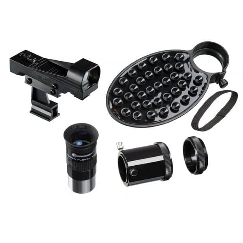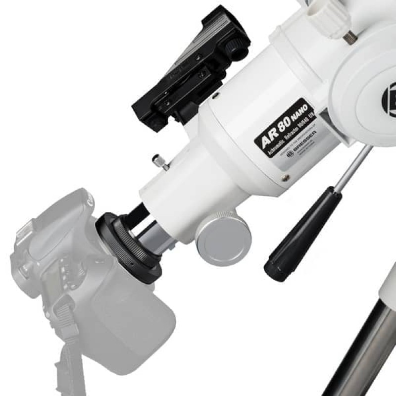 Телескоп Bresser MessierAR-80/640 Nano AZпредставляет собою короткофокусної среднеапертурний рефрактор з якісною оптикою Інова азимутальной монтуванням Nano AZ, зручною для роботи з легкими трубами середньої апертури. Телескоп буде вельми цікавий для початківців користувачів, так як має ідеальний баланс між світлосилою і можливістю отримати достатню збільшення при роботі з якісним базовим окуляром. Модель відмінно підходить для спостереження об'єктів Сонячної системи, а також для наземних спостережень. Телескоп поставляється практично зібраним, і з необхідним набором аксесуарів для негайного старту спостережень. Телескоп дуже стійкий, так як поставляється в комплекті зі сталевою монтіровкой.Інтересним аксесуаром в комплектації є адаптер для смартфона, за допомогою котороголегко фотографувати об'єкти спостережень на камеру вашого смартфона. Флагманська лінійка телескопів Messier від німецького виробника Bresser відрізняється високою якістю збірки, точністю підгонки оптичних елементів і використанням тільки високоякісних матеріалів. Тут немає компромісів якості і ціни. Всі вузли, деталі, а також дзеркала телескопа виконані з прецизійної точністю, що надає найкращі оптичні та експлуатаційні характеристики в своєму класі. Телескопи Bresser Messier гідно оцінені досвідченими любителями астрономії.