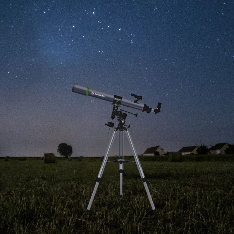 - Діаметр лінзи 90 мм, завдяки чому телескоп збирає в 165 разів більше світла, ніж людське око.