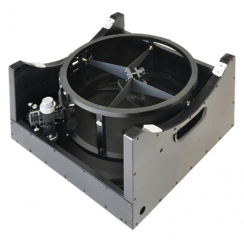 - Комплектація: Алюмінієві направляючі каркасу: 8 шт Монтування: ламіноване ДСП; Видошукач LED з точковим наведенням; Опорне колесо висоти – 2 шт. Фокусер 2"(50,8 мм) HEXAFOC з із гвинтовою передачею редуктором 10:1 / адаптером на 1.25" (31,7мм) Екран від розсіяного світла Подовжувальна трубка для фокусера Інструмент дзеркальної колімації Батарейний відсік з сумкою для вентиляторів Противаги 2 х 1,0 кг Пилозахисні ковпачки для відкритої діафрагми та тримача окуляра