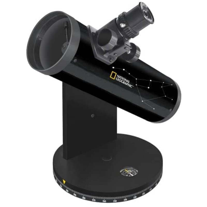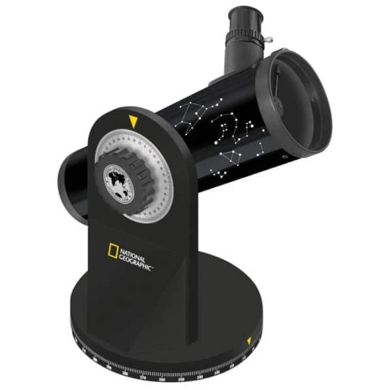 Телескоп National Geographic 76/350 Dobson надає можливість вивчати нічне небо, не витрачаючи часу на складання і тривалу настройку. Телескоп поставляється в зібраному вигляді, що дозволяє швидко встановлювати його в будь-якому зручному для спостереження місці. За допомогою цього телескопа можна вивчати не тільки кратери Місяця, але і спостерігати в ясному нічному небі гігант Юпітер з його супутниками, Сатурн з його приголомшливими кільцями, а також об'єкти, що знаходяться за межами нашої Сонячної системи, такі як знаменита Туманність Оріона. P >