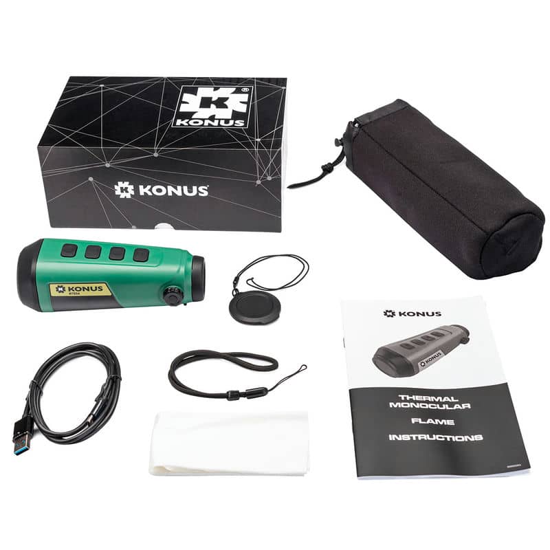 Konus FLAME 384x288 — тепловізійний монокуляр із великою матрицею, 15 мм об'єктивом та максимальною дальністю виявлення до 1353 метрів. Модель дуже універсальна і підходить для різних сценаріїв спостереження: полювання, патрулювання та охорони, пошуково-рятувальних операцій, спостереження за живою природою. Даний монокуляр можна рекомендувати для застосування у військових чи тактичних цілях. Зручний форм-фактор сприяє комфортному носінню у кишені верхнього одягу. При необхідності прилад можна закріпити на тактичний шолом або штатив (не входить у комплект).