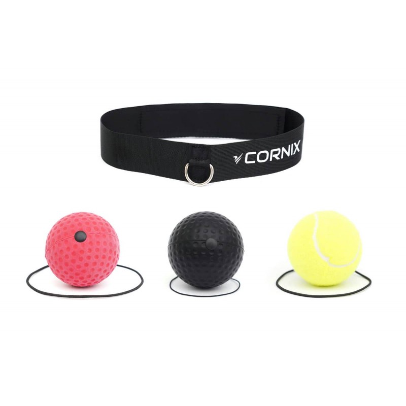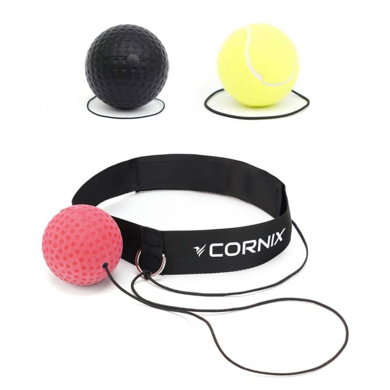 Набір для відпрацювання ударів від Cornix містить універсальну пов'язку для голови на липучці, що легко регулюється під будь-який об'єм та три змінні м'ячі на гумках. Довжину гумки можна регулювати, вона повинна сягати від чола до кінця витягнутої руки. М'ячі мають різну твердість та вагу: чорний - 20 г (м'який); червоний - 85 г (середній); жовтий - 60 г (твердий). Принцип роботи тренажера доволі простий - намагайтеся вдарити м'яч кулаками кожен раз, як він повертається. Спочатку це буде не просто та згодом можна буде об'єднувати удари у цілі серії.