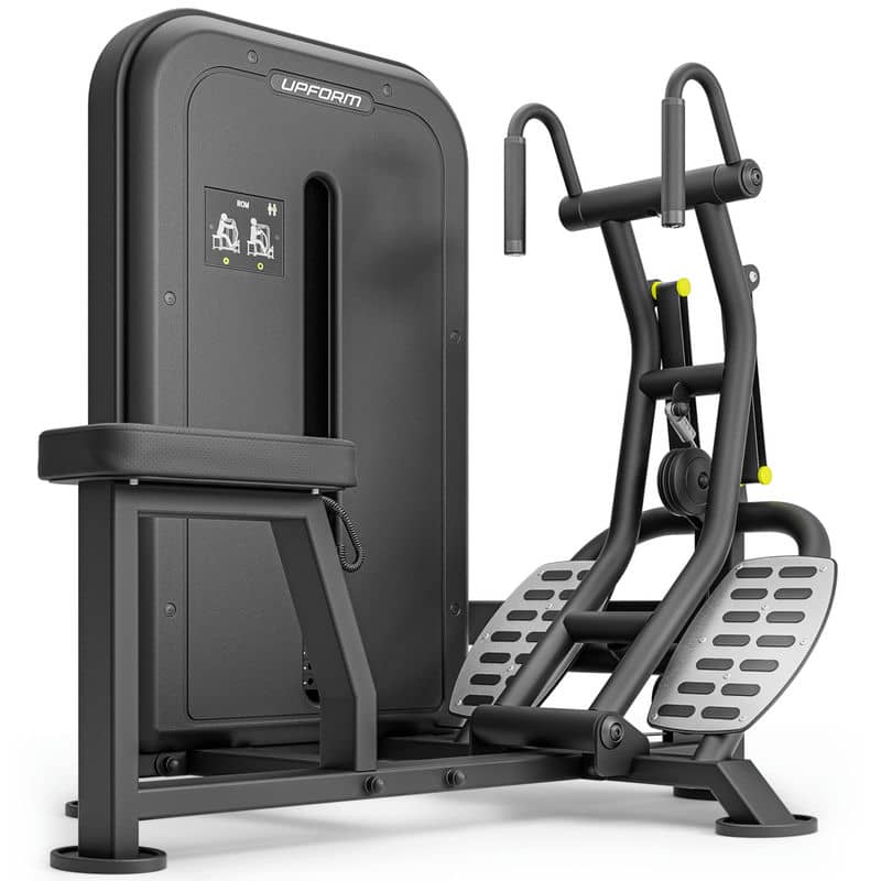 UpForm US-U005 Студійний гребний тренажер для кругових тренувань. Перфорована підкладка добре вентилюється і залишається сухою під час тренувань. Ваговий стек містить 12 тарілок, кожна вагою 7,5 кг. Вага вказана в кілограмах і фунтах.