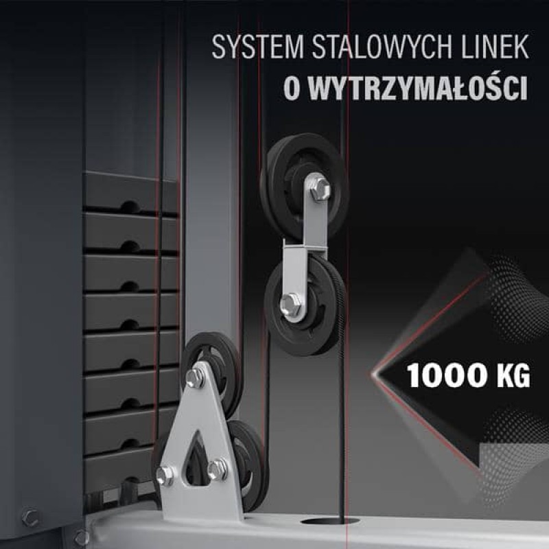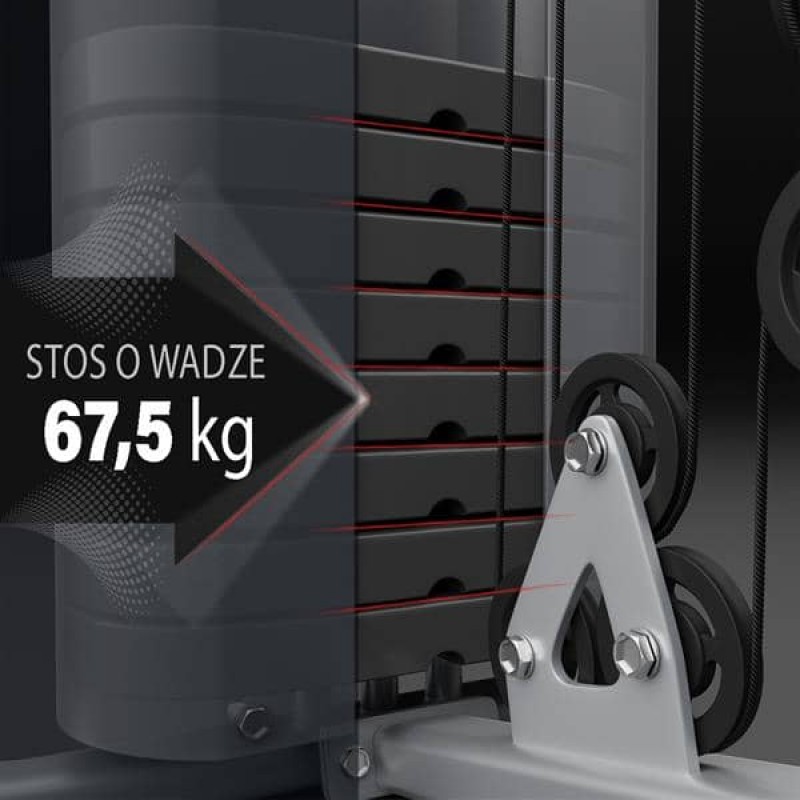 TYTAN 7 HMS - це професійний домашній тренажер. Він ідеально підходить для всіх, хто хоче покращити свою фізичну форму та фігуру. Тренажер дозволяє формувати всі групи м'язів: спину, груди, трапецієподібні м'язи, м'язи преса, сідниці, передпліччя, плечі, трицепси та ноги. Стабільна конструкція Тренажер виготовлений на основі міцних сталевих профілів з додатковими захисними елементами, що забезпечують безпеку використання. Великою перевагою є також спеціально профільована конструкція, що має значний вплив на стабільність всього пристрою, і сталеві троси в оплетенні, що витримують навантаження до 1000 кг. Сидіння Мульти-тренажер оснащений зручним сидінням з 4-ступінчастим регулюванням. Комфорт гарантують міцна губка і сучасна оббивна тканина з карбоновим малюнком і підвищеною зносостійкістю. Деталі Всі ручки оснащені гумовим покриттям для надійного захоплення і нековзних властивостей. Додатково TYTAN 7 оснащений ременем для щиколотки для розвитку нижніх м'язів і однією ручкою, призначеною для вправ на верхню частину тіла. Вправи: жим штанги на грудях жим на грудях жим штанги на поперечину жим ногами станція висока тяга скручування рук нижня тяга Специфікація: Профіль рами: 6 х 1,5 см Сталевий трос в оплітці: міцність 1000 кг Подвійні підшипники Додатковий чохол для стека Регульоване сидіння: 4 рівні Розміри (в розкладеному вигляді): довжина: 151 см ширина: 116 см висота: 205 см Розміри спинки: довжина: 54 см ширина: 26 см товщина: 5 см Розміри сидіння: довжина: 33 см ширина: 30 см товщина: 5 см Вага тренажера: 67,5 кг Загальна вага: 142,5 кг Максимальна вага користувача: 100 кг У комплекті: один ремінь для щиколотки Примітки: Не для комерційного використання Гарантія 24 місяці