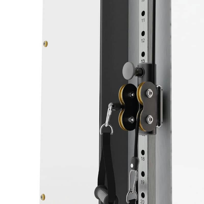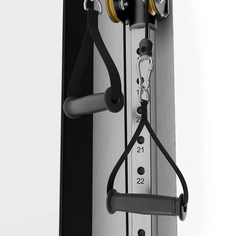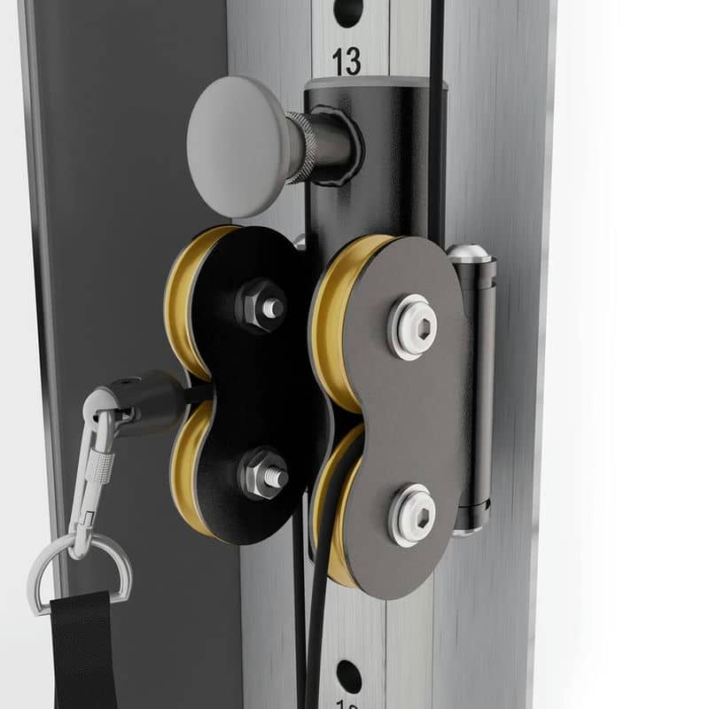 BSP301 має 10-ступеневу пневматичну зміну навантаження від 5 до 30 кг (з кроком 2,5 кг), що забезпечить вам комфорт і покращить ваше тренування. Ви можете легко змінювати навантаження за допомогою розумного сенсорного дисплея. Ви також можете регулювати висоту розташування сталевого троса на 28 рівнях! Рукоятки кріпляться на карабінах, тому ви можете змінювати та адаптувати їх під свої потреби. Комбіноване натягнення кабелю дозволяє подвіїти опір!
