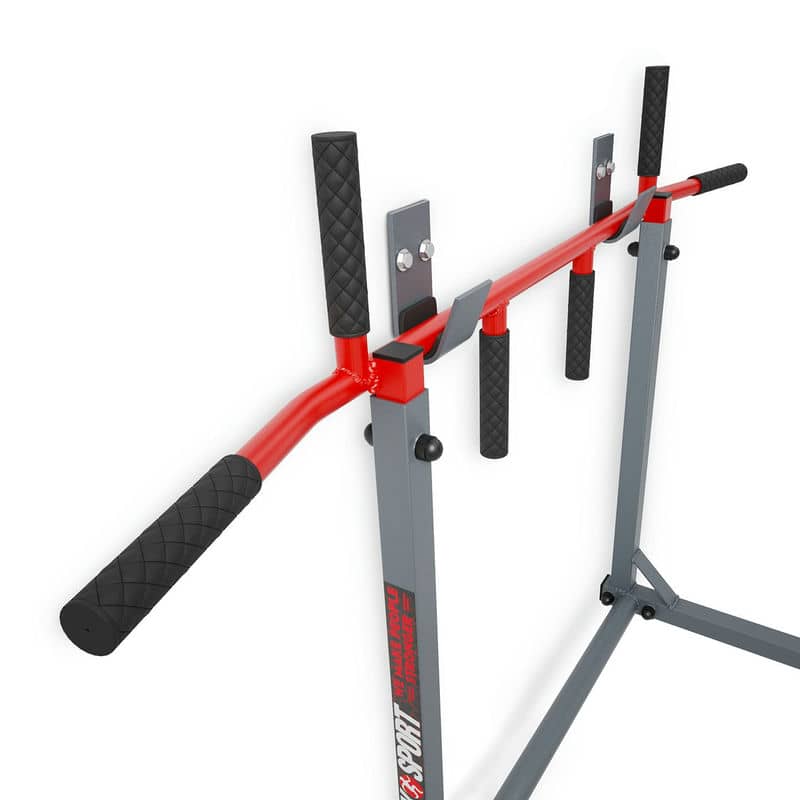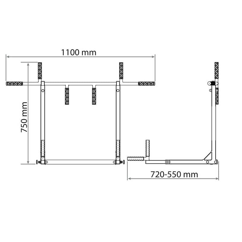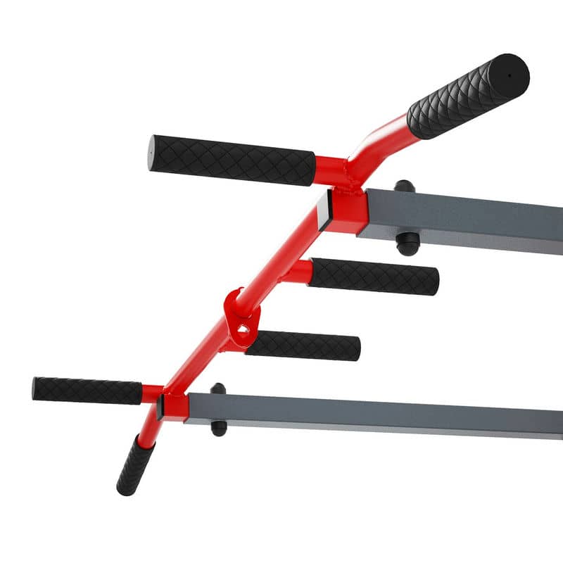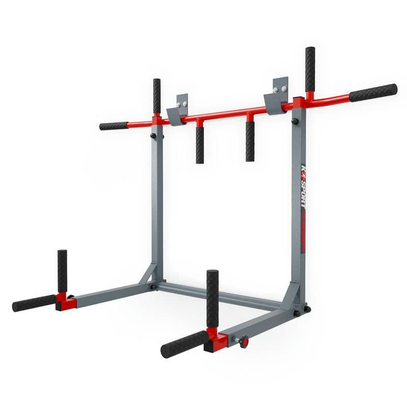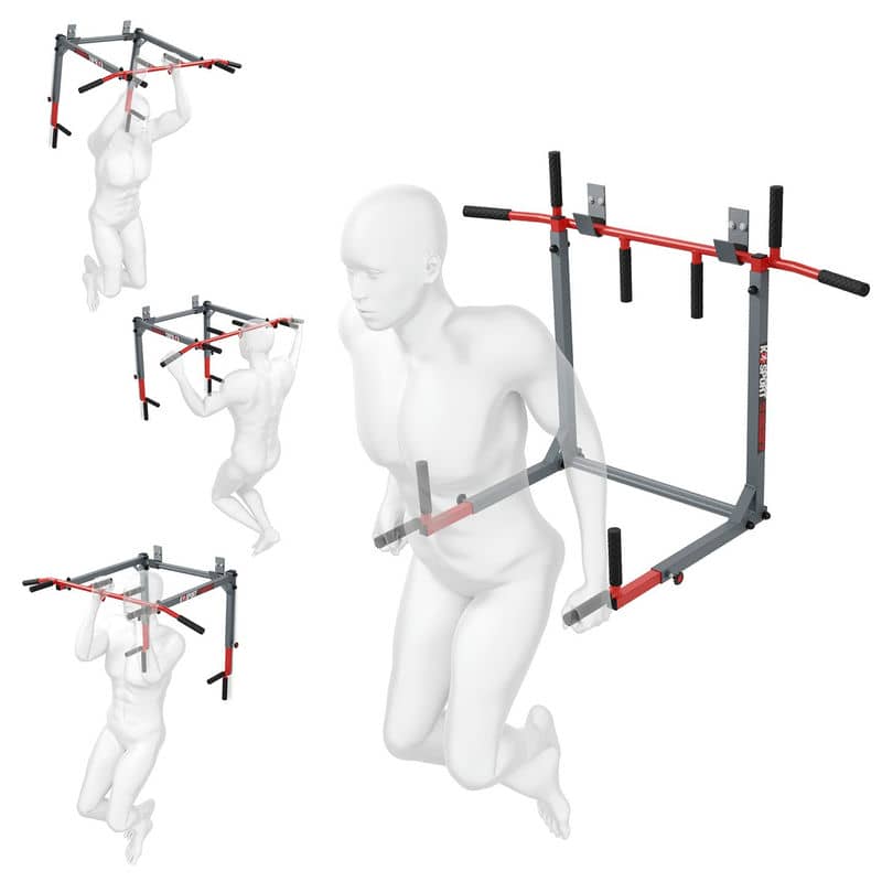 Обладнання, призначене для монтажу на стіні. Він має два способи кріплення, тож ви можете використовувати його як штангу для підтягування або занурення. Безліч можливостей для професійного тренування м'язів спини і рук завдяки п'яти різним захопленням. Після повороту обладнання поручень дозволяє ретельно тренувати м’язи преса, рук і грудей. Гачки в комплекті!