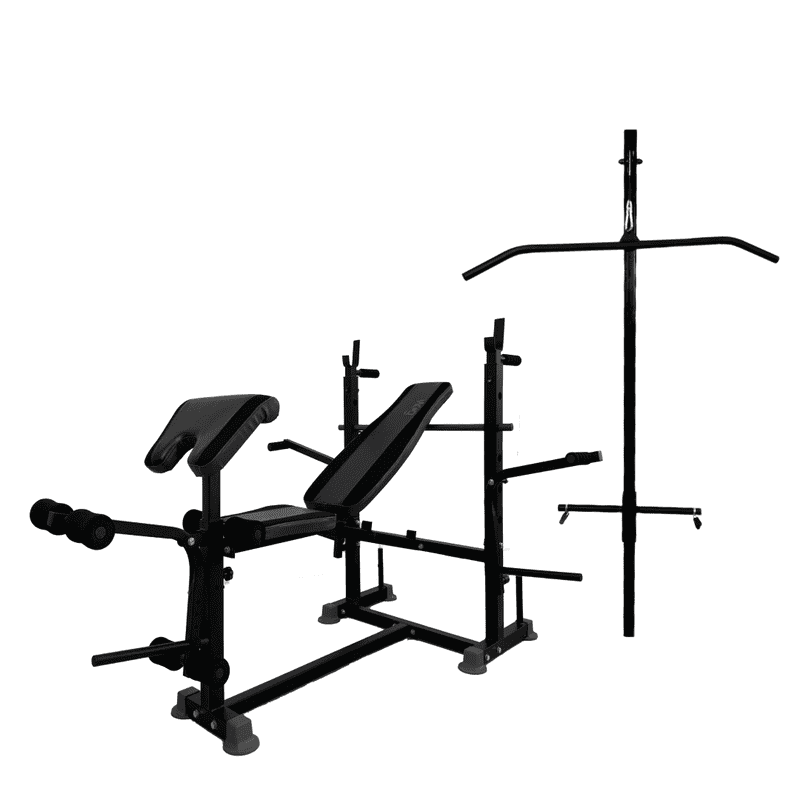 Для виконання силових вправ у комплект входить тяга зверху . Як навантаження використовуються вагові диски з посадковим діаметром 25 мм і 31 мм.Стійка для верхньої тяги дозволяє тренувати практично всі групи м'язів верхньої частини тіла. Тренажер, верхня тяга має конструкцію, яка була спеціально розроблена для різних вправ, пов'язаних з опрацюванням рук і груп м'язів верхньої частини тіла з можливістю збільшувати навантаження за допомогою додаткових вагових блоків.