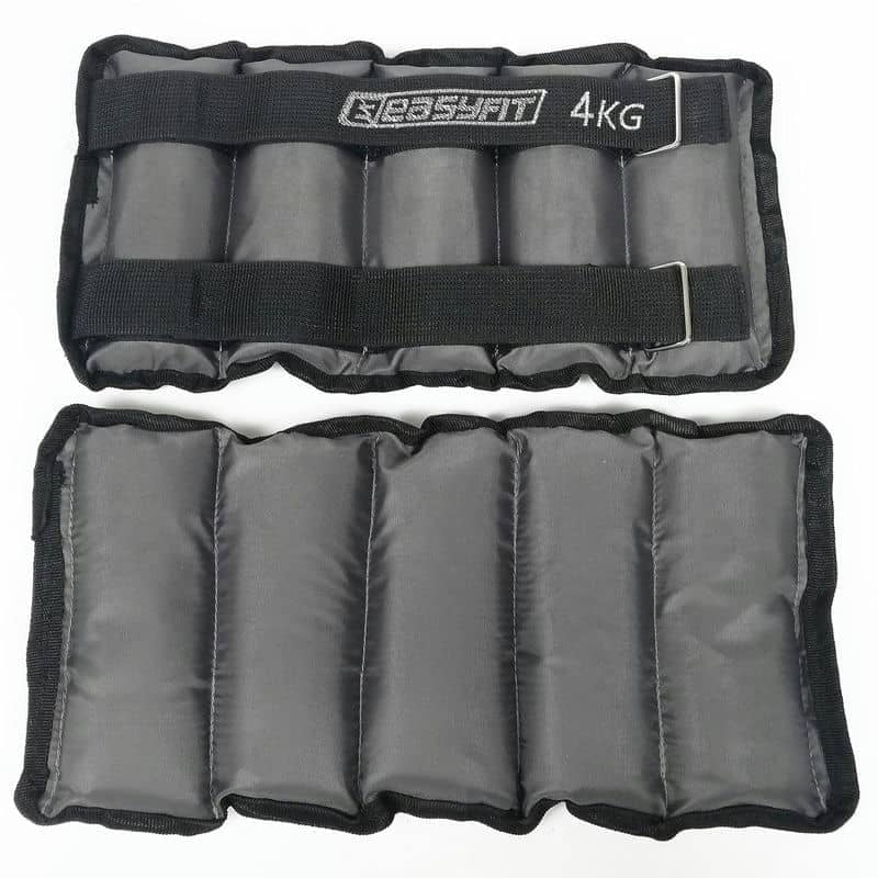 Обтяжувачі EasyFit Metal виготовлені за новою технологією з використанням сталевої гранули. Таке вдосконалення дозволило знизити розміри обтяжувачів, зробити їх компактнішими. Важливо також, що металеві кульки не злежуються, як це буває з піщаним наповнювачем, в результаті обтяжувач на дотик стає більш "м'яким" і податливим, комфортніше облягає зап'ястя (лодижку) при фіксації. використанням якісних та міцних матеріалів, що забезпечують їх високу міцність та довговічність. Перед зашивкою в обтяжувач металева гранула фасується в поліетиленові пакети підвищеної густини. При зашиванні в тканину Oxford використовується посилена капронова нитка. По периметру обтяжувачі прошиті двічі. Затяжка обтяжувачів проводиться через рамку із загартованої сталі завтовшки 3 мм і фіксується взуттєвою липучкою, розрахованою на велику кількість циклів. худорлявого підлітка до масивного пауерліфтера!