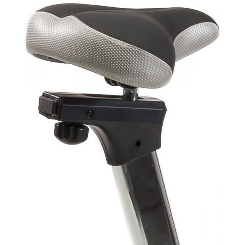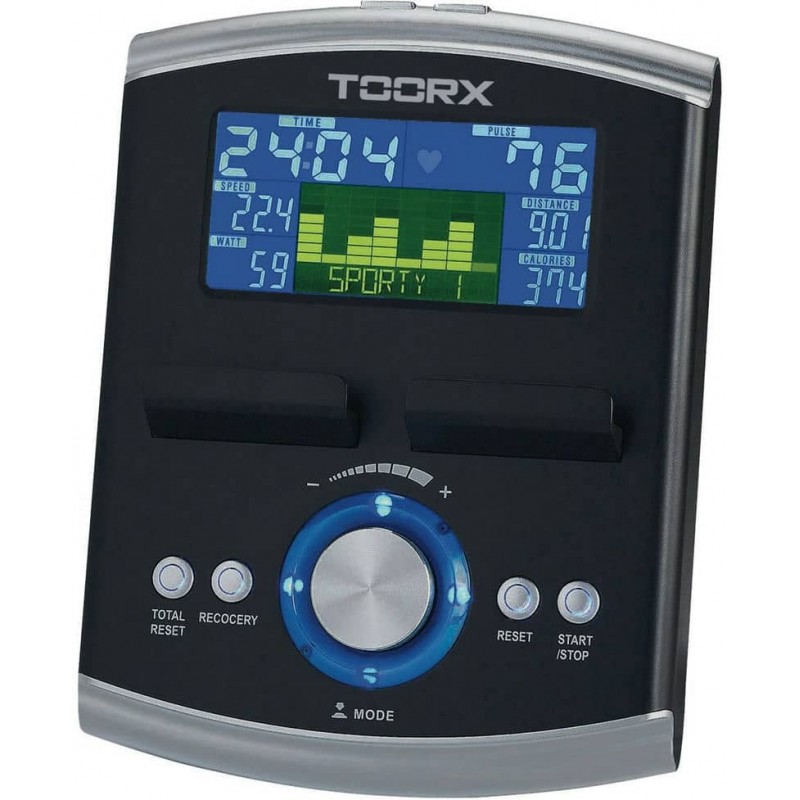 Велоергометр Toorx Upright Bike BRX 100 ERGO (BRX-100ERGO) із преміальної лінійки Chrono Line від італійського виробника Garlando S.p.A. призначений для комфортного кардіотренування в домашніх умовах. Тренажер має 32 рівня навантаження, що регулюються за допомогою сучасного комп'ютера. 14-кілограмовий маховик створює чудову плавність ходу, знижуючи навантаження на суглоби та мінімізуючи ризик отримання травми в процесі занять. Велоергометр розрахований на вагу до 150 кг і підійде для користувачів зростом до 2 м. Вбудований приймач для бездротового датчика вимірювання пульсу буде доречним під час тренування по одній із чотирьох пульсозалежних програм. Консоль тренажера має підставку для смартфона/планшета та підтримує Bluetooth для інтеграції з популярними програмами iConsole+ Training, Kinomap і Zwift, які перетворять монотонне тренування в захоплюючий процес. Сидіння велоергометра регулюється по висоті та в горизонтальній площині для індивідуального налаштування, а транспортувальні ролики в передній частині тренажера дозволяють переміщати його по кімнаті.