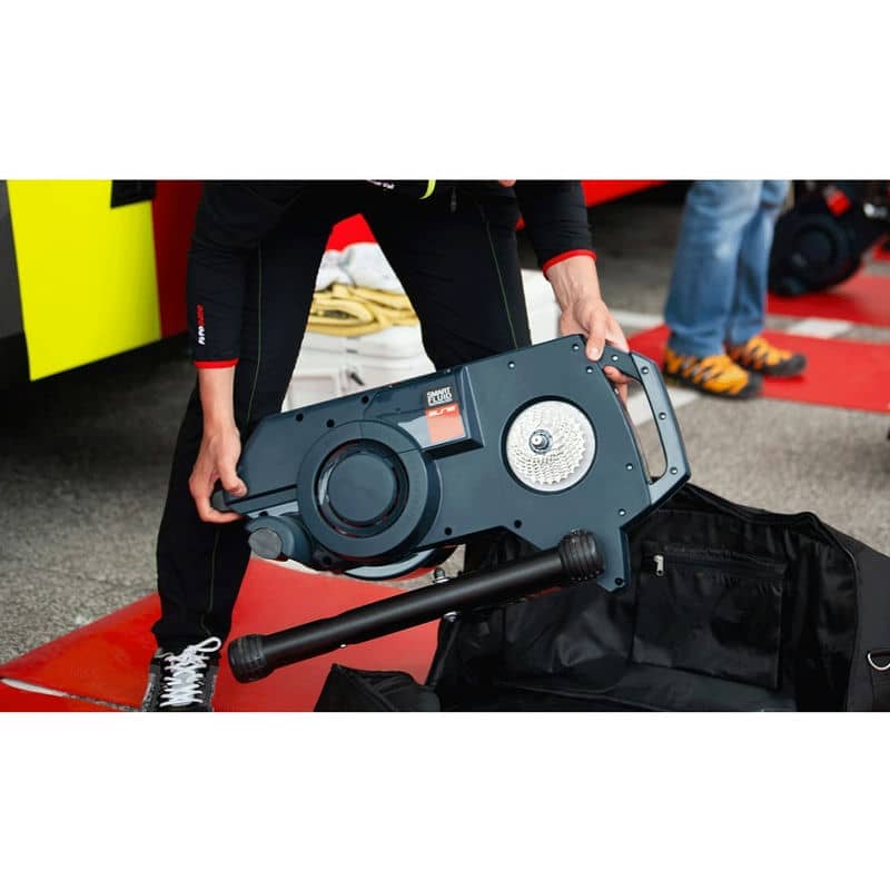 Щоб тренажер кріпився до задньої касети вашого велосипеда (спочатку потрібно зняти заднє колесо). Ця система не тільки забезпечує 100% передачу енергії педалей, але і є однією з найтихіших на ринку. Тренажер підходить як для гірських, так і для дорожніх велосипедів. Матеріал і структура рами забезпечують надзвичайну стійкість. Велосипед тренер Elite Турно поглинає навіть найсильніші вібрації. Складана конструкція дозволяє скласти тренажер і зберігати його, коли ви ним не користуєтесь. Elite Turno - це надзвичайно потужний, але компактний велотренажер з безпосередньою передачею енергії та стійкістю до рідини, що дозволяє їздити на велосипеді в приміщенні (і не тільки) взимку.