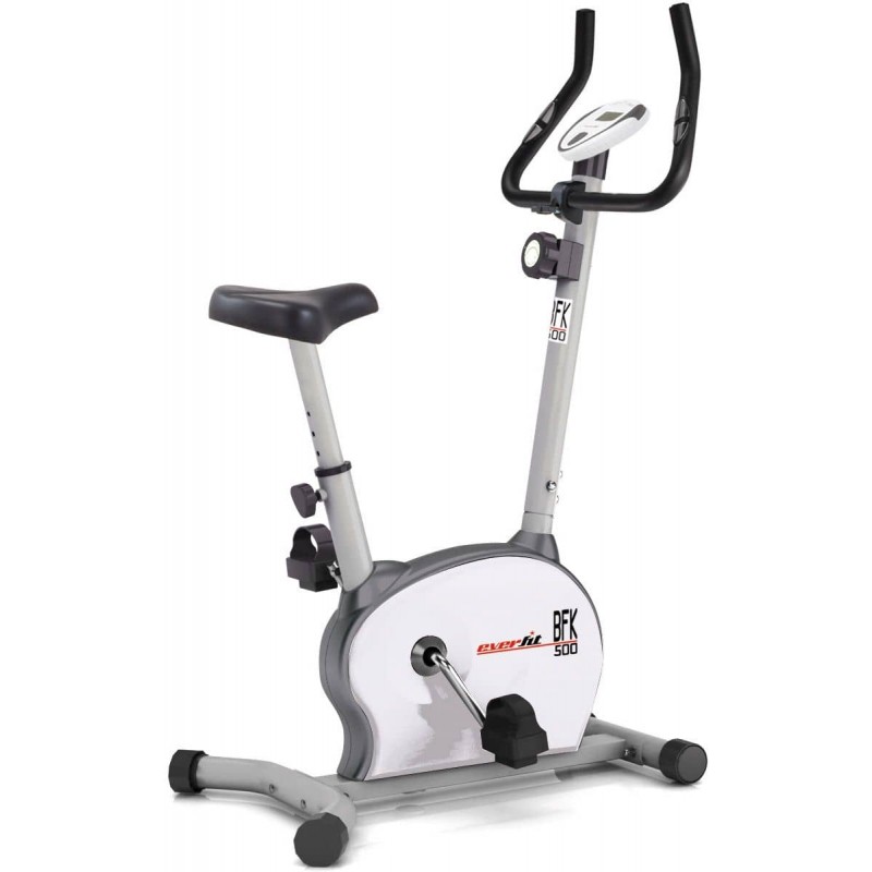 Велотренажер Everfit Upright Bike BFK 500 (BFK-500) від італійського виробника Garlando S.p.A. призначений для повноцінного кардіотренування в домашніх умовах. Тренажер має 8-рівневе ручне регулювання навантаження, а також простий у користуванні комп'ютер. 5-кілограмовий маховик створює достатню плавність ходу, знижуючи навантаження на суглоби та мінімізуючи ризик отримання травми в процесі занять. Велотренажер розрахований на вагу до 100 кг і підійде для користувачів зростом до 1,9 м. Вбудовані сенсорні датчики вимірювання пульсу будуть доречними під час тренування для контролю частоти серцевих скорочень. Сидіння велотренажера регулюється по висоті, а кермо має регулювання кута нахилу для індивідуального налаштування. Транспортувальні ролики в передній частині тренажера дозволяють переміщати його по кімнаті.