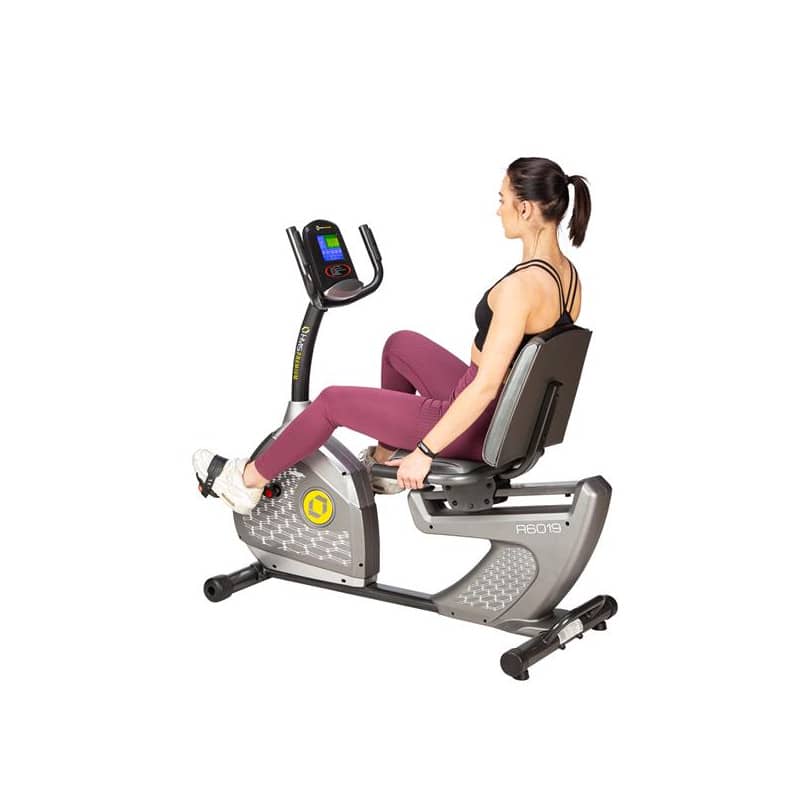 Велотреназер оснащений високошвидкісним комп'ютером з сенсорним RC-дисплеєм, призначений для мобільного пристрою. Елементи керування дуже інтуїтивно зрозумілі та прості у використанні. R6019 має 21 вбудовану програму. Кожен користувач, незалежно від рівня підготовки, знайде для себе відповідну програму. Ці 21 програми включають програму HRC і програму WATT. Користувач якщож може налаштувати 4 власні програми відповідно до ваших потреб. Користувач встановлює навантаження, яке він повинен відчувати щохвилини, тому йому більше не особливо думати про зміну параметрів тренування під час тренування. Звичайно, є також класична ручна прома, де ви самостійно змінюєте навантаження в процесі тренування. Наче всього цього було недостатньо, цей комп'ютер дозволяє підключатися до мобільного додатку. Таке рішення гарантує, що ви можете контролювати своє тренування і прогрес, атакуючи урізноманітні тренування, наприклад, включивши в додаток арту міста.R6019 - це міцна, стійка конструкція. Ніжки для вирівнювання допомагають вирівняти тренажер, а трансповальні колеса полегшують його переміщення. R6019 - найбільш вібраційний для тих, хто хоче змінити кардіотренування на комфортні домашні умови.