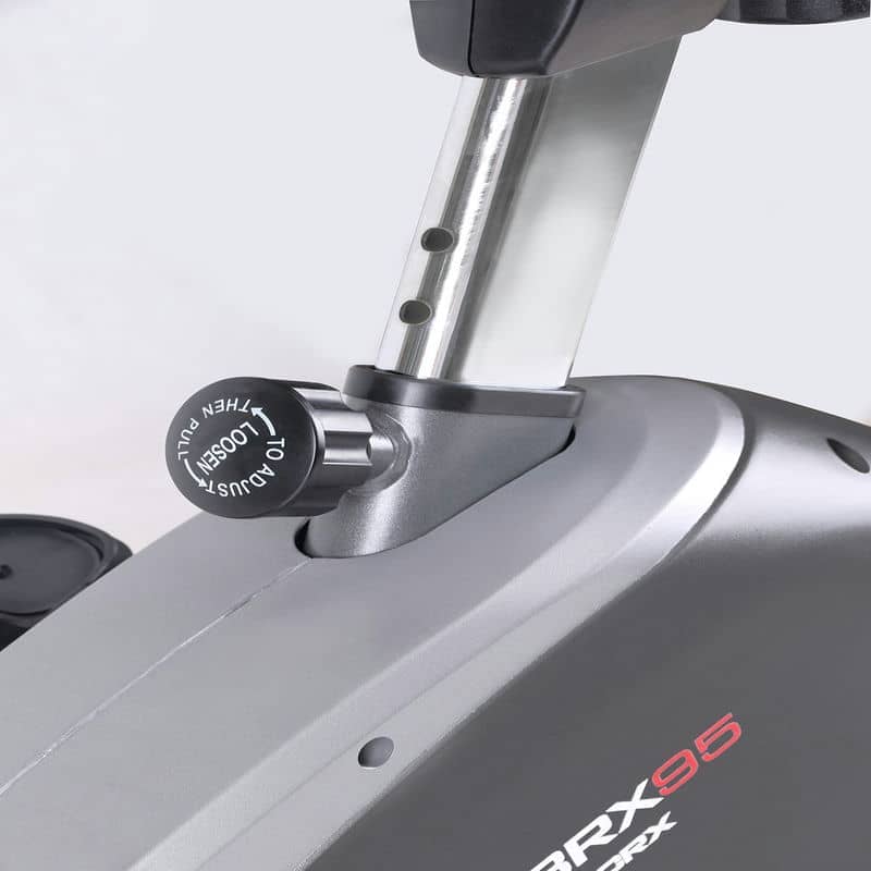 Велотренажер Toorx Upright Bike BRX 95 (BRX-95) від італійського виробника Garlando SpA призначений для повноцінного кардіотренування в домашніх умовах. Тренажер має 32 рівні навантаження, що регулюється за допомогою сучасного комп'ютера. 10-кілограмовий маховик створює хорошу плавність ходу, знижуючи навантаження на суглоби та мінімізуючи ризик отримання травм у процесі занять. Велотренажер розрахований на вагу до 125 кг і підійде для користувачів зростом до 2 м. Вбудований приймач для бездротового датчика вимірювання пульсу буде під час тренування по одній з чотирьох пульсозалежних програм. Консоль тренажера має утримувач для смартфона/планшета. Сидіння велотренажера регулюється по висоті та в горизонтальній площині для індивідуального налаштування, а транспортувальні ролики в передній частині тренажера дозволяють переміщати його по кімнаті. Особливості: