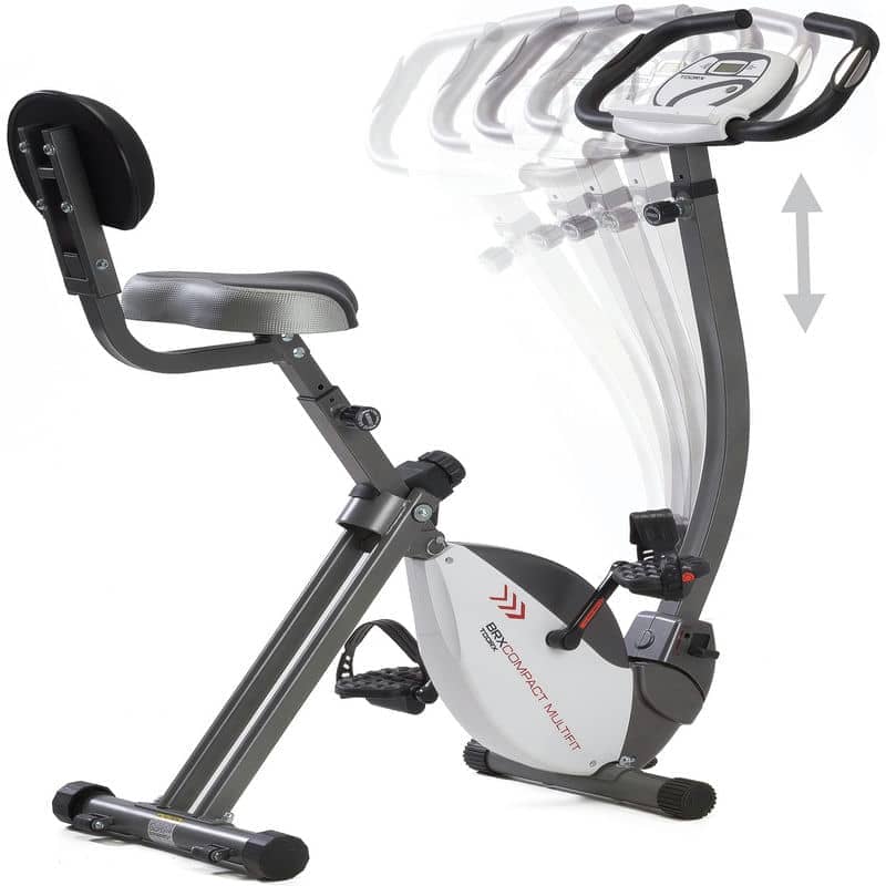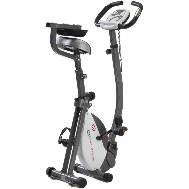 Велотренажер Toorx Upright Bike BRX Compact Multifit (BRX-COMPACT-MFIT) від італійського виробника Garlando S.p.A. призначений для повноцінного кардіотренування в домашніх умовах. Тренажер має 8-рівневе ручне регулювання навантаження, а також простий у користуванні комп'ютер. 6-кілограмовий маховик створює достатню плавність ходу, знижуючи навантаження на суглоби та мінімізуючи ризик отримання травми в процесі занять. Велотренажер розрахований на вагу до 100 кг і підійде для користувачів зростом до 1,9 м. Вбудовані сенсорні датчики вимірювання пульсу будуть доречними під час тренування для контролю частоти серцевих скорочень. Сидіння велотренажера з відкидною спинкою регулюється по висоті, кермо має регулювання як кута нахилу, так і по вертикалі для індивідуального налаштування. Транспортувальні ролики в передній частині тренажера дозволяють переміщати його по кімнаті.