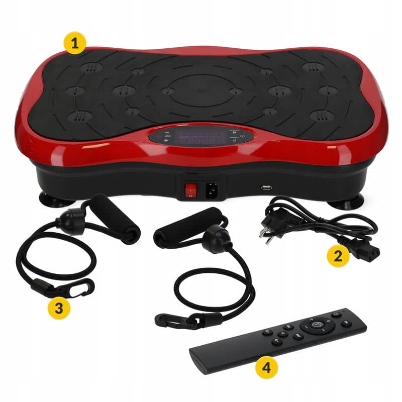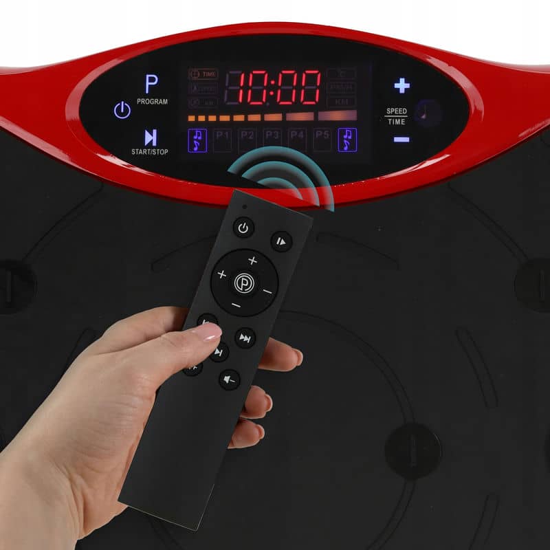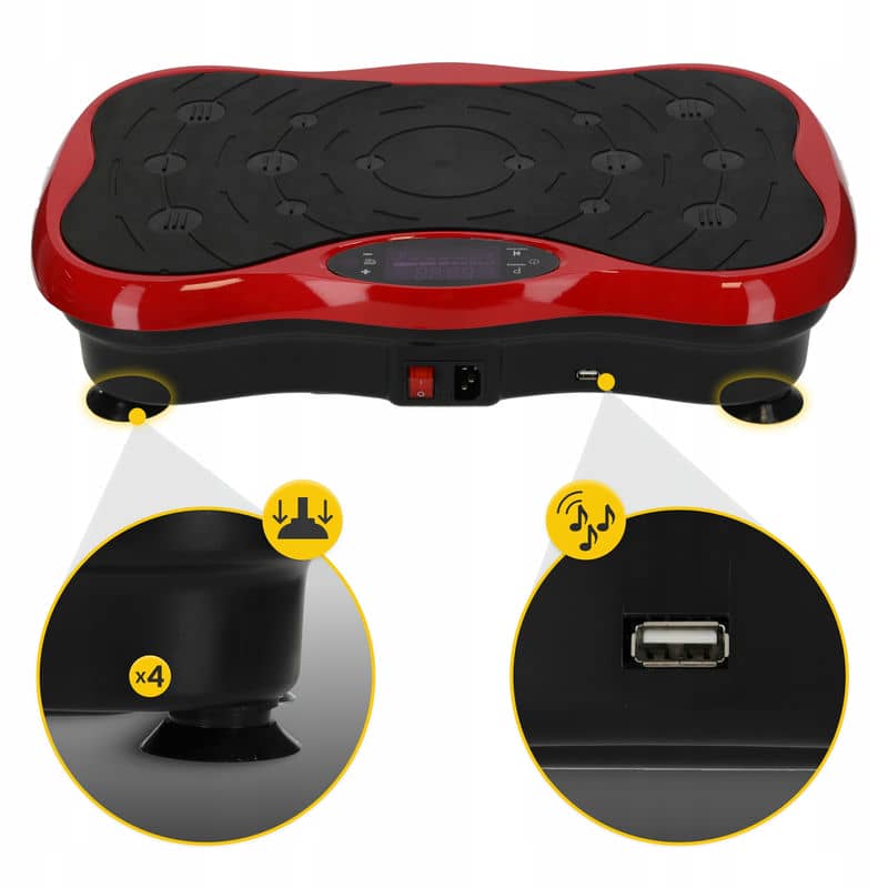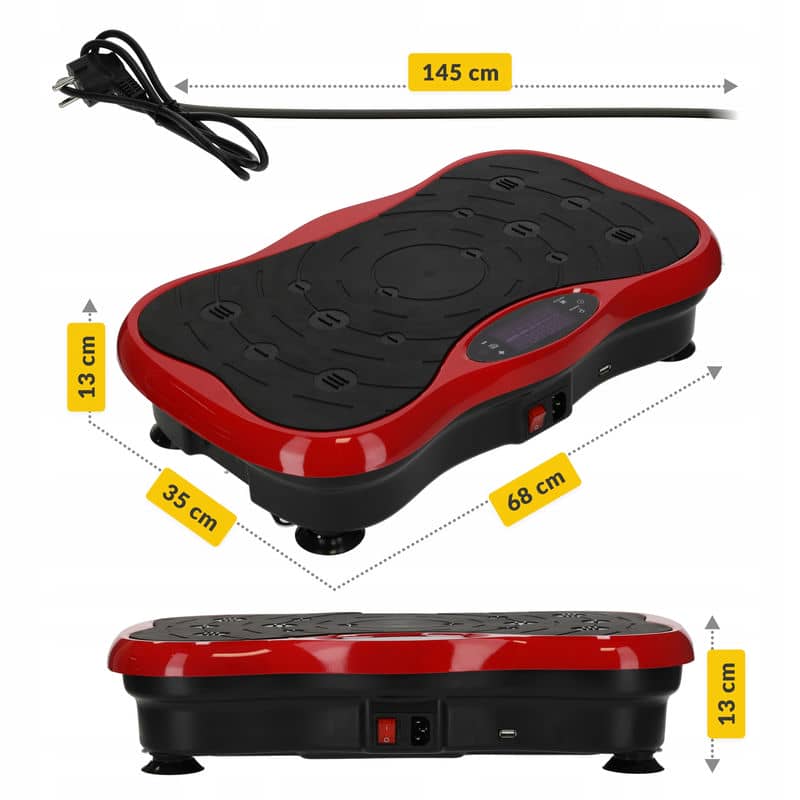 Віброплатформа 4Fizjo Ultra+ живиться від електромережі 220 В. Користувачам доступно п'ять програм та цілих 99 рівнів швидкості. Такий великий вибір варіантів тренувань дозволяє поступово збільшувати інтенсивність, що обов'язково оцінять як початківці, так і досвідчені спортсмени. Протиковзка поверхня та ніжки спеціальної форми, забезпечують відмінну стабільність апарату, навіть під час виконання складних вправ на високих рівнях швидкості. На додачу, пристрій працює надзвичайно тихо завдяки продуманій системі звукопоглинання. На верхній частині розміщена панель керування з кнопками та LCD екраном на якому відображаються основні параметри: обрана програма, швидкість, пройдена відстань та час. Виробником реалізована можливість управління тренажером дистанційним пультом, тож вам не доведеться переривати заняття для зміни будь-яких параметрів. Слід зазначити, що в комплект входить пара еспандерів, які кріпляться до платформи та ще більше розширюють варіації ваших тренувань.