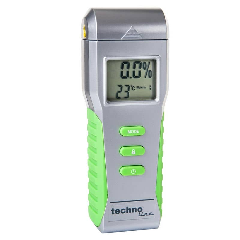Technoline WZ1300 виконаний в легкому і надійному пластиковому корпусі, що зручно тримати в руці. Електроди мають довжину 10 мм. Діапазон вимірювання від 0,0 % до 50 %, а похибка не перевищує 0,5 %. Окрім вимірювання вологості і температури, прилад також обладнаний датчиком заряду батареї. Кнопка блокування збереже результати на екрані у випадку, якщо вімірювана поверхня знаходиться у незручному місці.