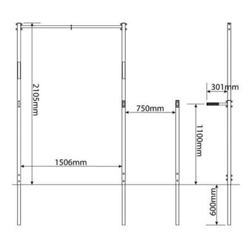 Висота 205 см і ширина 150 см гарантують простір, в якому можна виконувати всі види вправ. Розташування конструкції подалі від стін та інших перешкод гарантує, що ви отримаєте максимальну віддачу від цього пристрою. Це особливо важливо, коли ви хочете тренуватися з боксерським мішком або лямками TRX.