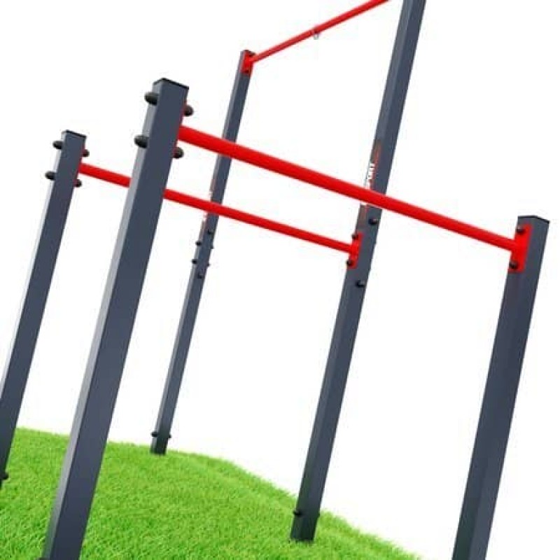 Штанга з додатковими поручнями - ідеальне обладнання для занять спортом на відкритому повітрі. З його допомогою можна проводити інтенсивні тренування бодібілдингу або гімнастики. Ви зміцните багато груп м'язів і покращите витривалість і гнучкість. Ідеально підходить для тренувань елементів гімнастики.