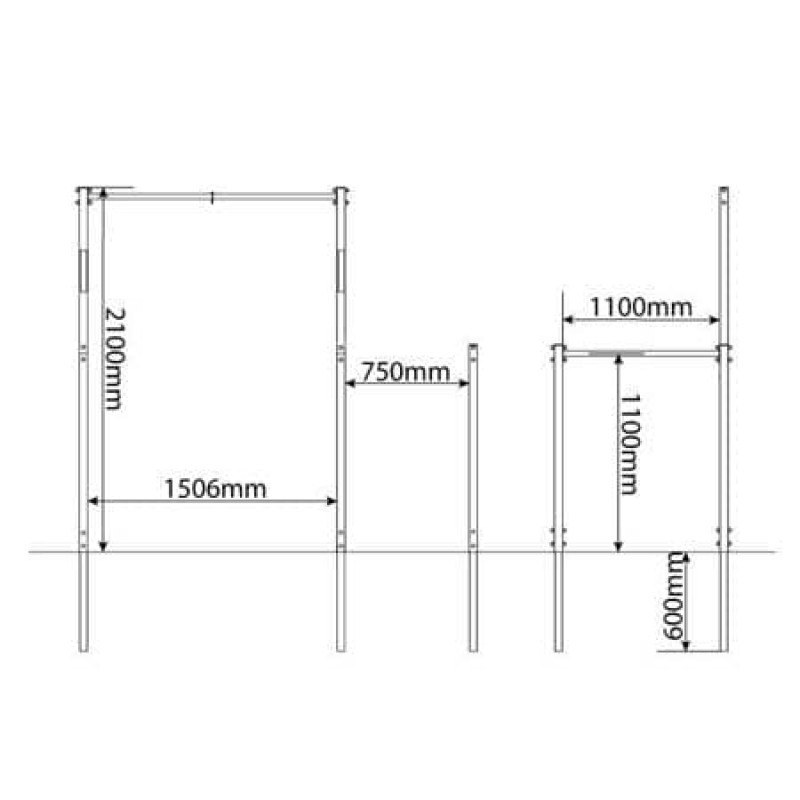 Висота 210 см і ширина 150 см гарантують простір, в якому можна виконувати всі види вправ. Розташування конструкції подалі від стін та інших перешкод гарантує, що ви отримаєте максимальну віддачу від цього пристрою. Це особливо важливо, коли ви хочете тренуватися з боксерським мішком або лямками TRX.