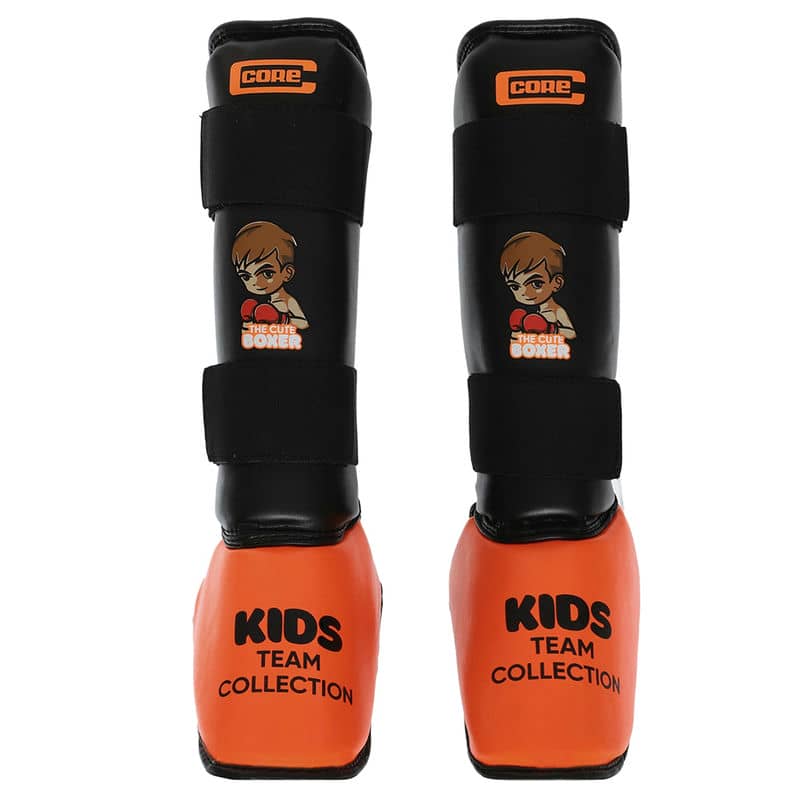 Агресивний чорно-помаранчевий дизайн візуально вирізняє спортсмена на татамі та вселяє впевненість. Динамічні лінії опуклого щитка підкреслюють форму гомілки, забезпечуючи щільну посадку та естетичну геометрію. Особливу увагу приділено розширеній зоні захисту стопи — її посилена прокладка з вигнутим контуром гарантує повне покриття та комфортний розподіл тиску.