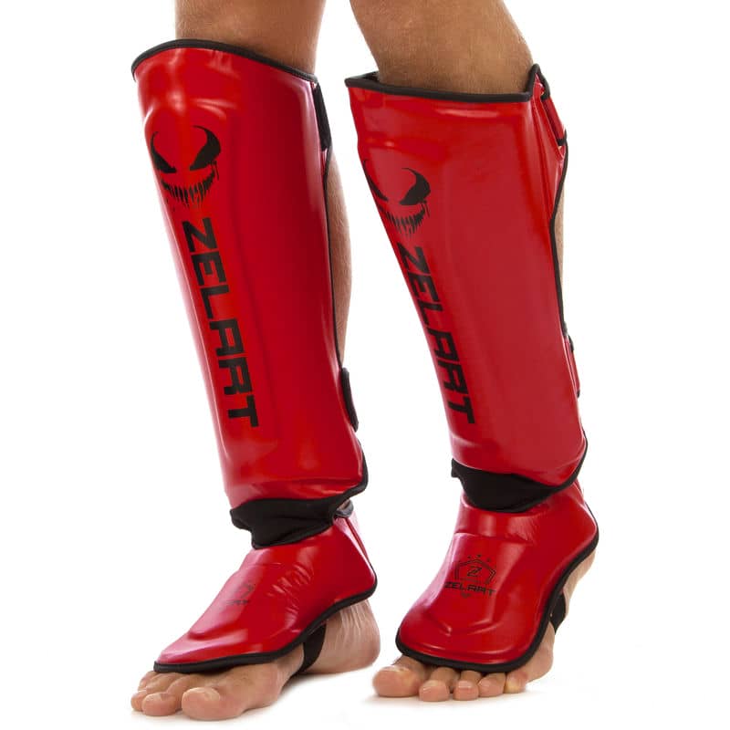 Захист гомілки і стопи для единоборств Zelart L, червоний-чорний, код: BO-1376_LRBK