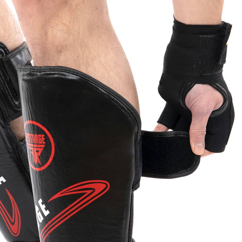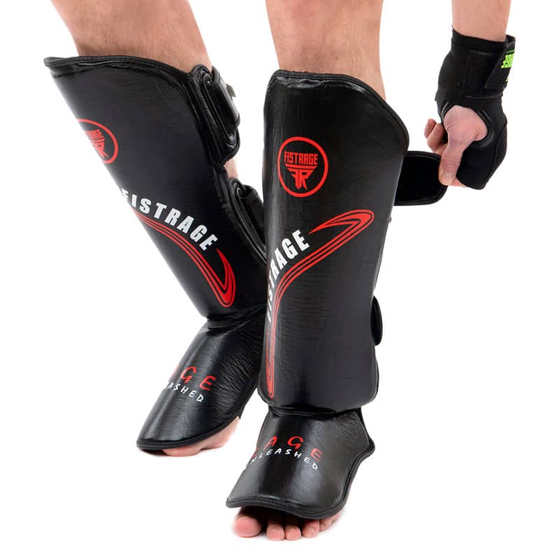 Захист гомілки і стопи для єдиноборств Fistrage M, чорний-червоний, код: VL-8496_MBKR
