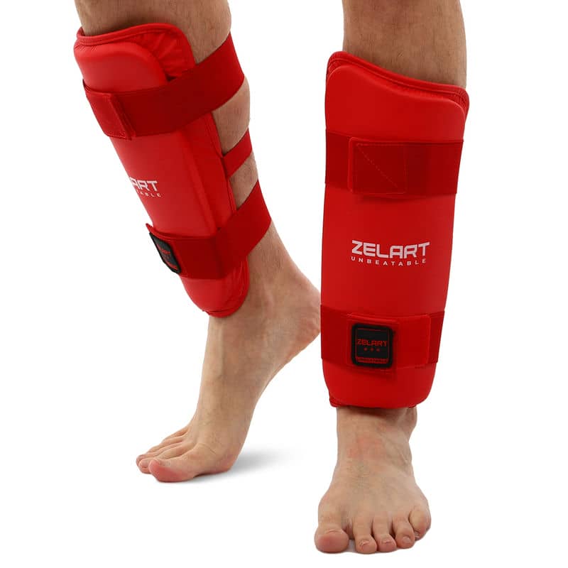 Захист гомілки та стопи для карате Zelart L, червоний, код: BO-7249_LR