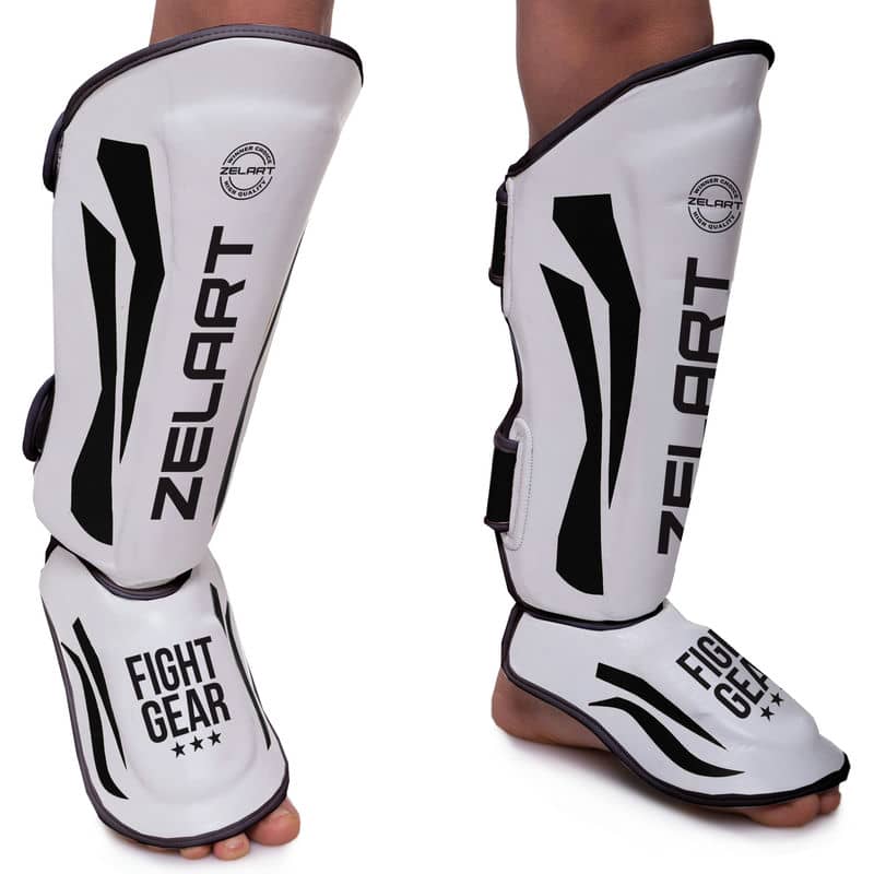 Для виготовлення цього елемента захисної екіпіровки використовується високоякісний поліуретан, який характеризується високою зносостійкістю і міцністю. Спінений матеріал високої щільності прикриває ударну поверхню - гомілку і стопу, роблячи її площа більше. За рахунок цього знижуються травмуючі наслідки удару, при збереженні його сили. Захист оснащена кріпленням, яке складається з двох широких ременів з застібками на липучках в поєднанні з еластичними лямками під ступнею і на п'яті. Це дозволяє добитися ідеального прилягання щитків до ноги і запобігти їх зміщення під час тренувань або змагань.