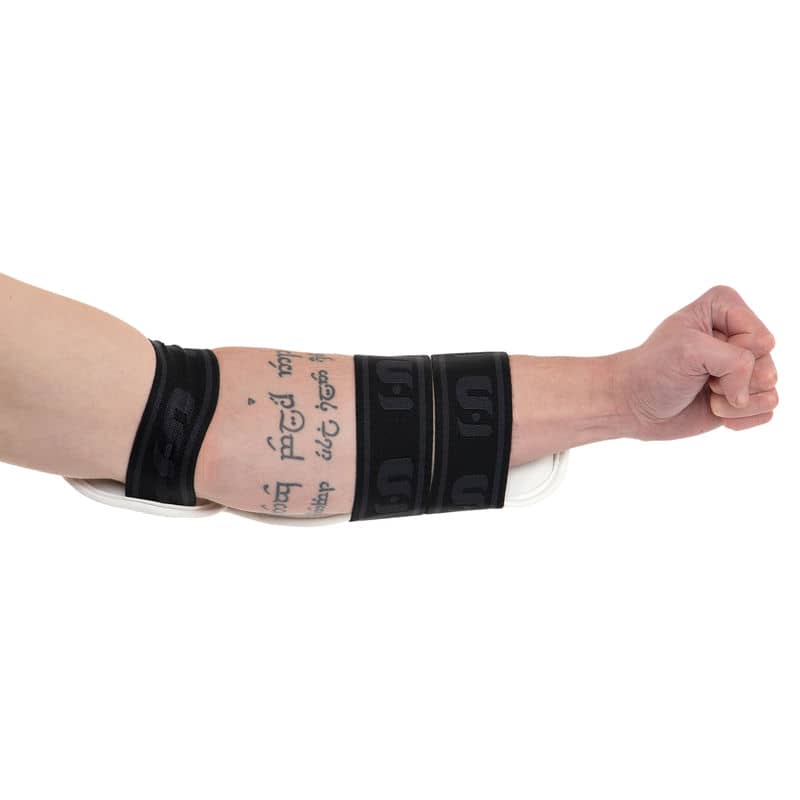 - Надягніть щиток на передпліччя — центральна гумка зафіксує його на місці.