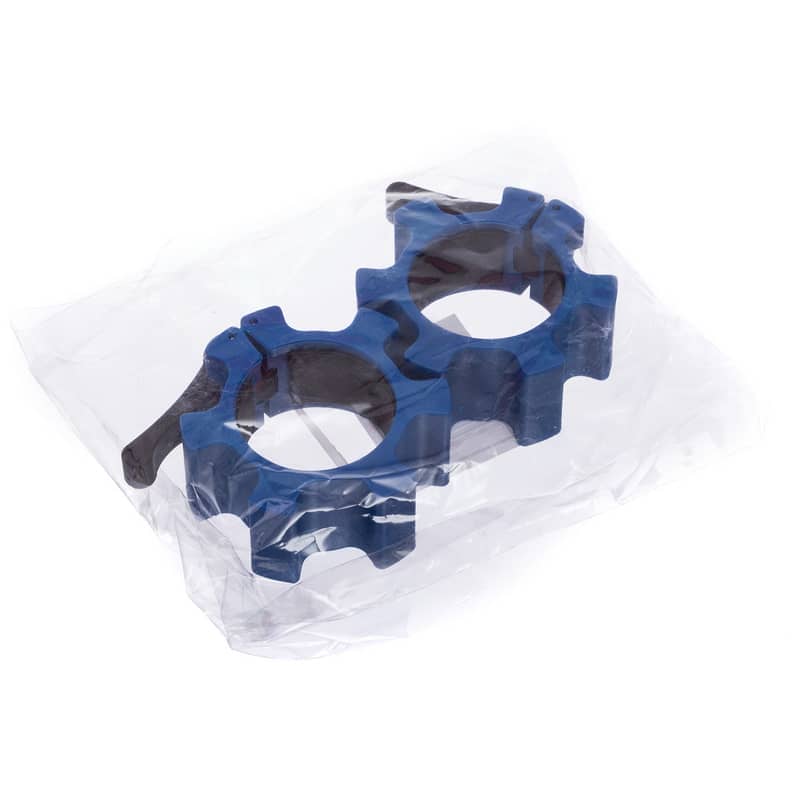Замки для грифа від бренду Zelart виготовлені з ABS-пластика. Цей міцний матеріал має масу переваг у порівнянні з металом. Він не схильний до корозії і має мінімальну вагу. Діаметр замків становить 50 мм, і вони сумісні з Олімпійськими грифами. У них передбачено механізм швидкого знімання, який включає два елементи: один відповідає за фіксацію замка на штанзі, а інший - за його знімання з грифа. Одним натисканням руки ви фіксуєте замок на посадковій втулці, і завдяки матеріалу на його внутрішній поверхні він не ковзає по гладкому металу.