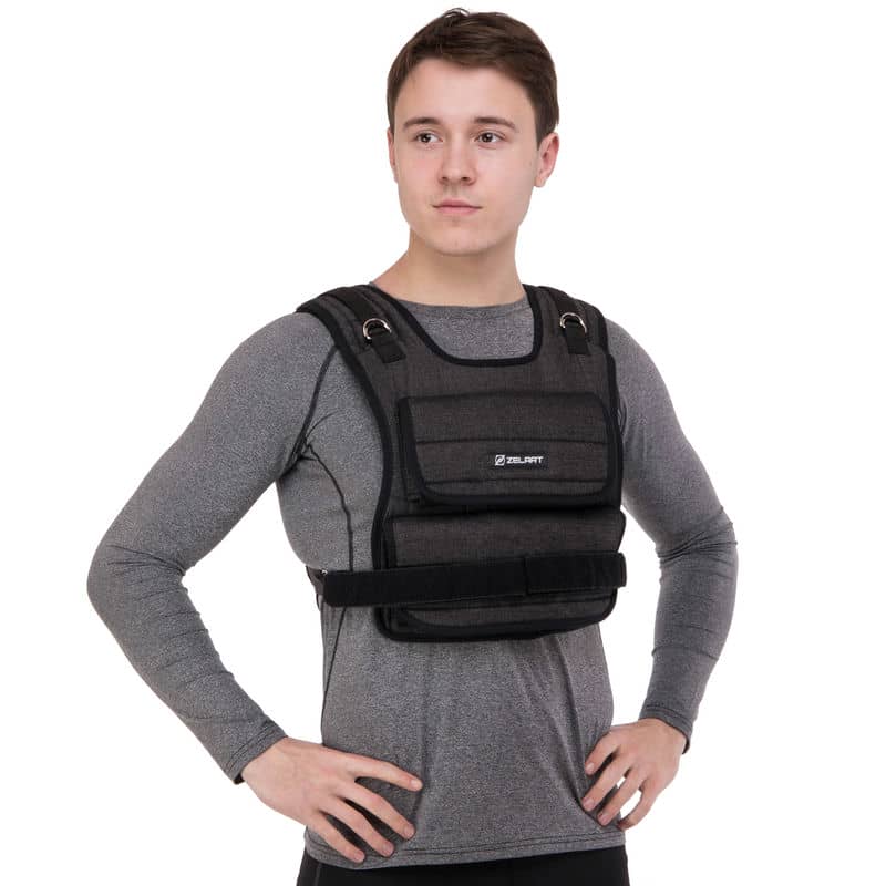 Регульований жилет-обважнювач Zelart дає змогу ефективно тренуватися, де б ви не були. Жилет виготовлений із міцної джинсової тканини. На спині присутня світловідбивна смужка, яка робить спортсмена більш помітним для водіїв транспорту в темний час доби.